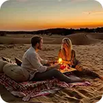 Delve into a serene ambiance of soft subtle music, gentle winds and a stunning view of the Jaisalmer Fort while treating your taste-buds with delicious freshly cooked meals that are prepared with clean RO water. The restaurant offers a wide variety of cuisines including Indian, Italian & Chinese.